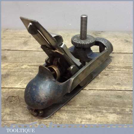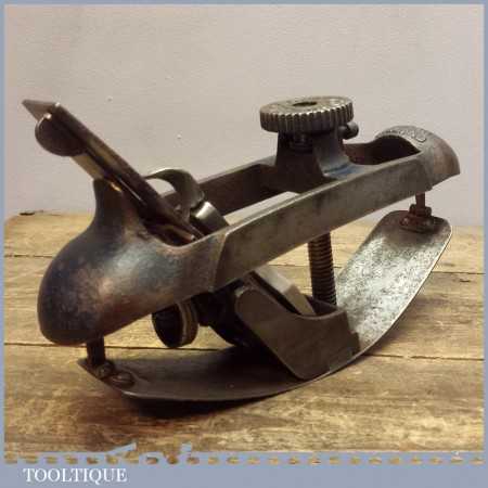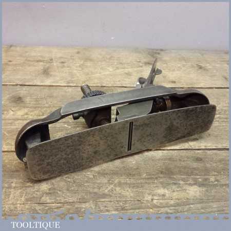 Vintage Record 020 compass plane in good working order and moves freely. Some staining to the sole plate and paint missing from the main body but otherwise is good sound condition.