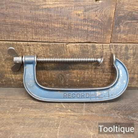 Vintage Record 8” Carpenters G Clamp with a wing nut adjuster in good used condition.