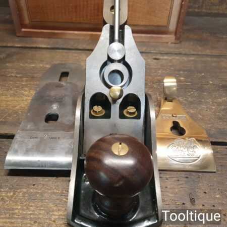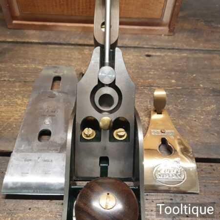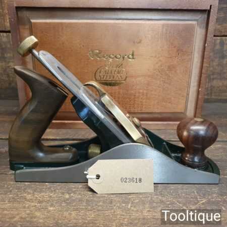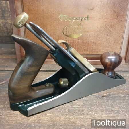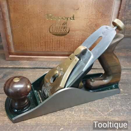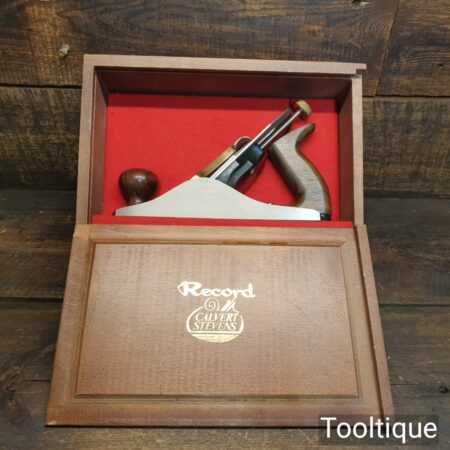 Vintage Record Calvert Stevens CS88 smoothing plane in presentation box and lightly used condition. These are a heavier construction with upgraded parts which was the primary reason for the premium plane market. This also has a Norris style adjuster which was renowned for its accuracy of adjustment. Note: Minor small dent and scratch to front knob, nothing serious but wanted to mention it.