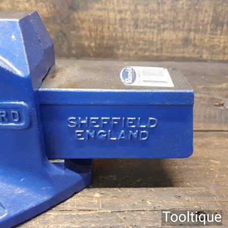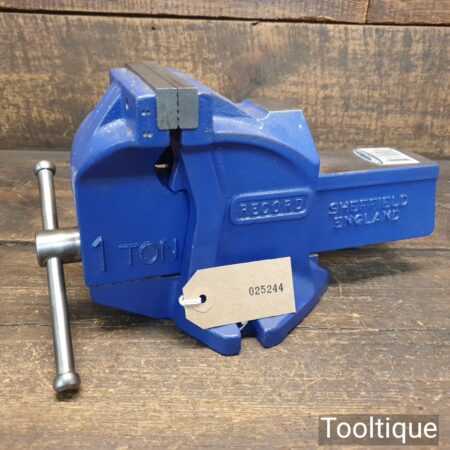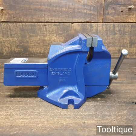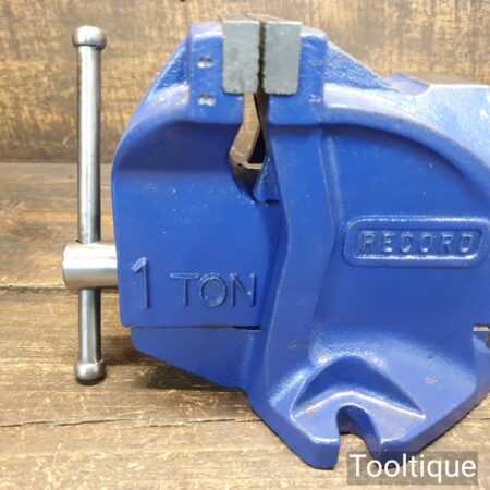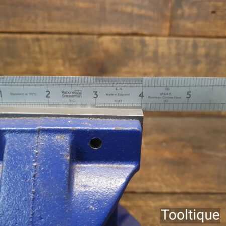 Vintage Record engineer’s cast steel bench vice with 4″ jaws in very good, lightly used condition.