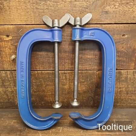 Vintage Record England 8” pair of G Cramps cleaned and oiled ready for use and in good used condition. Note: Fine Thread.