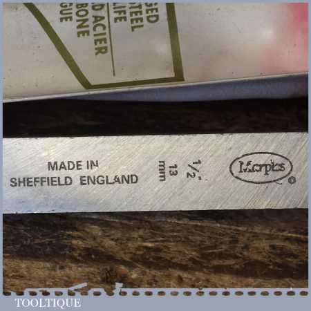 Vintage Record Marples carpenter’s 1/2” firmer chisel with shatterproof plastic handle, in unused condition.