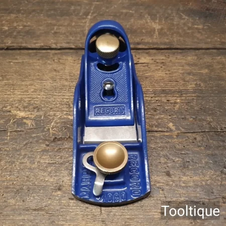 Vintage Record Marples England No: 060 ½ Adjustable Throat Block Plane, fully refurbished ready for use and in good used condition. When refurbishing planes, we do not merely clean them to make them look good, they are restored to a level that ensures this plane is actually ‘in plane to within 0.01mm’ sharpened, honed and all the components are thoroughly cleaned so that they move freely. Our planes are specifically reconditioned to satisfy professional tradesmen who will instantly know the difference between buying one of our planes over general other used ones.