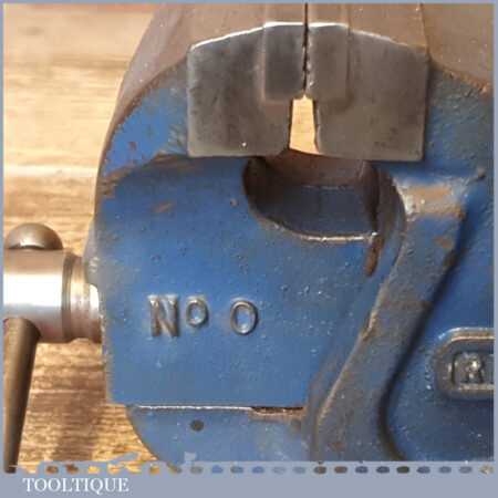 Vintage Record No: 0 engineer’s cast steel bench vice with 2 ½” jaws in good used condition.