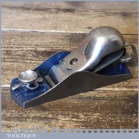 Vintage Record No: 018 adjustable throat block plane with knuckle joint lever cap, fully refurbished ready to use and in good used condition.