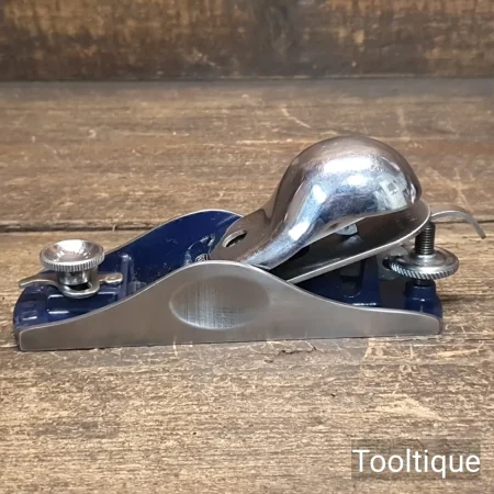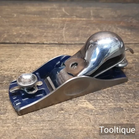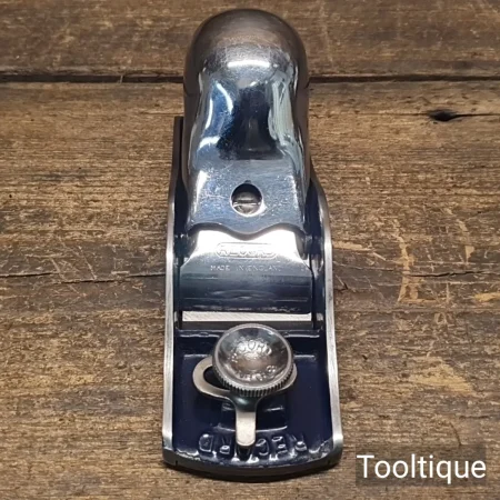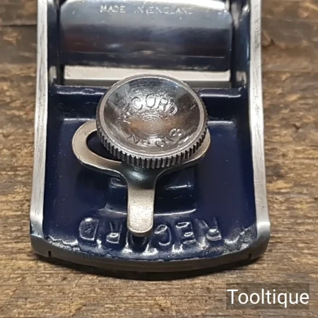 Vintage Record No: 018 Knuckle Cap Adjustable Throat Block Plane, refurbished ready for use and in good used condition. When refurbishing planes, we do not merely clean them to make them look good, they are restored to a level that ensures this plane is actually ‘in plane to within 0.01mm’ sharpened, honed and all the components are thoroughly cleaned so that they move freely. Our planes are specifically reconditioned to satisfy professional tradesmen who will instantly know the difference between buying one of our planes over general other used ones.