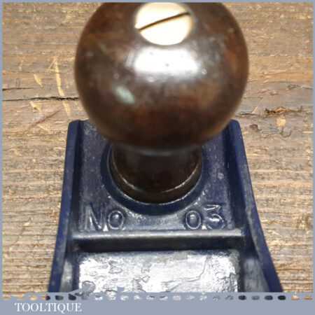 Vintage 1930’s Record No: 03 smoothing plane with rosewood handles, fully refurbished and in good used condition, ready to use. Manufactured between 1932-39. Note: Minor light marks to the sole.