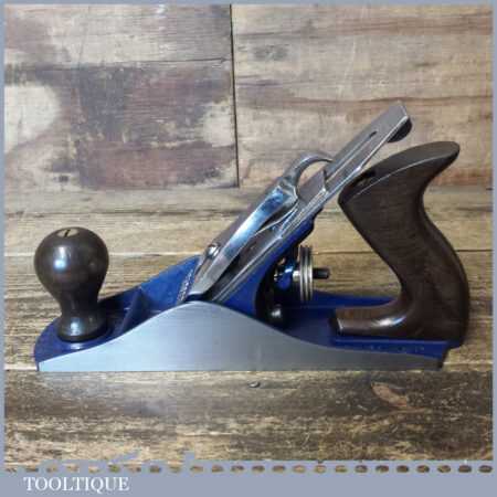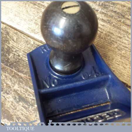 Vintage Record No: 04 smoothing plane, fully refurbished ready to use and in good used condition. Manufactured between 1952-58. Note: Tiny nibble to mouth but this doesn’t affect its use.
