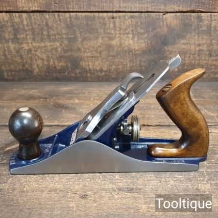 When refurbishing planes, we do not merely clean them to make them look good, they are restored to a level that ensures this plane is actually ‘in plane to within 0.02mm’ sharpened, honed and all the components are thoroughly cleaned so that they move freely. Our planes are specifically reconditioned to satisfy professional tradesmen who will instantly know the difference between buying one of our planes over general other used ones.