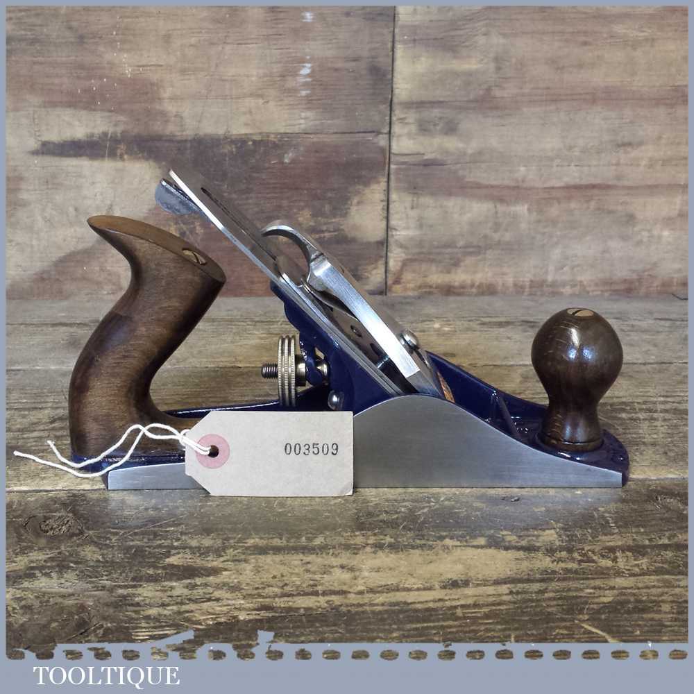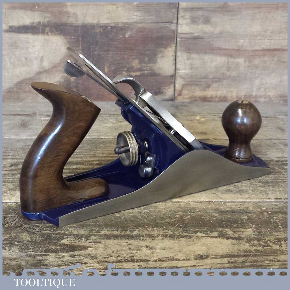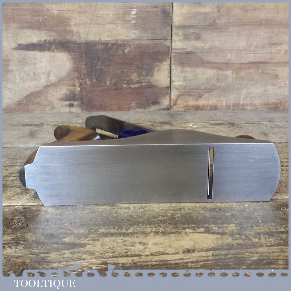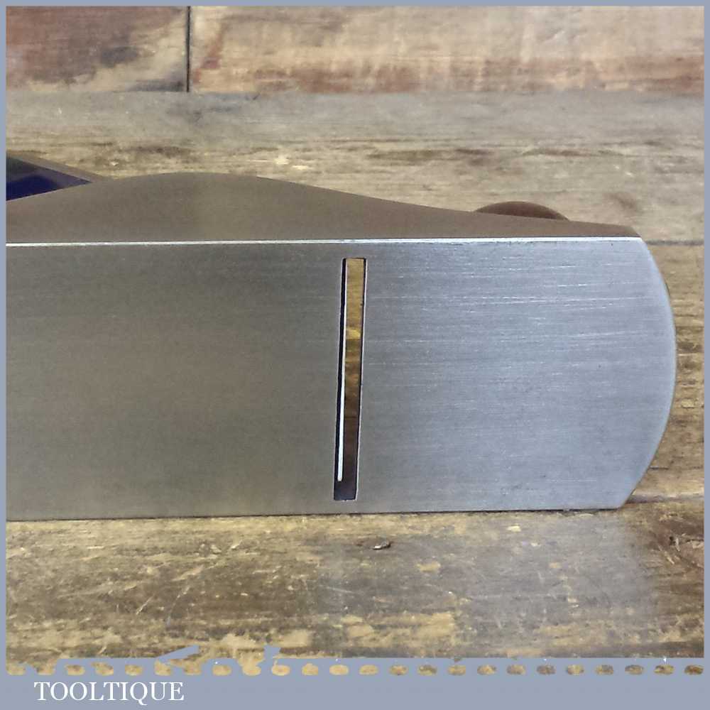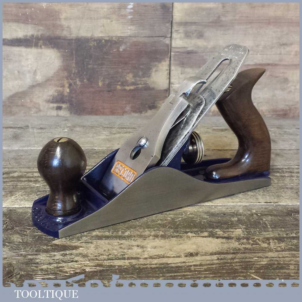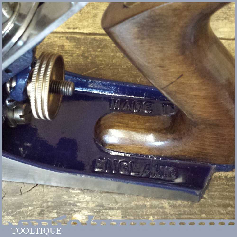 When refurbishing planes we do not merely clean them to make them look good, they are restored to a level that ensures they are actually ‘in plane’ sharpened, honed and all the components are thoroughly cleaned so that they move freely. Our planes are specifically reconditioned to satisfy professional tradesmen who will instantly know the difference between buying one of our planes over general other used ones. Our aim with reconditioning these planes as we do is to reduce tear out by refining the plane so it can be set up to take a very fine shaving. For new woodworkers: Note that we also refine the set up of the chipbreaker which is often neglected in other planes giving you the best possible start.