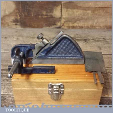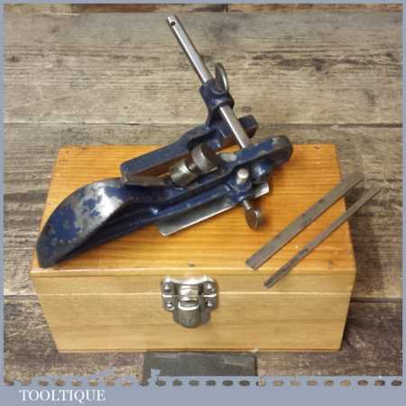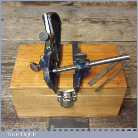 Vintage Record No: 040 plough plane and 3 cutters in a nice wooden box and in good used condition.