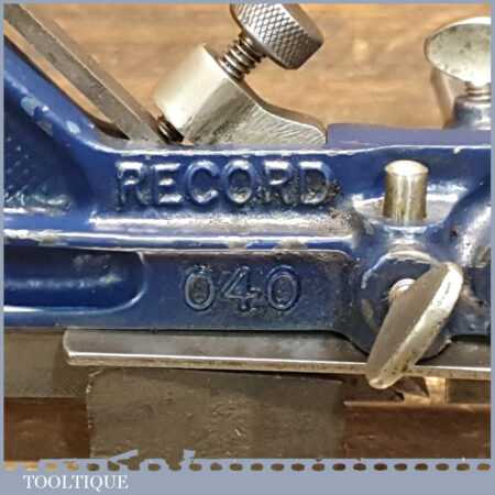 Vintage Record No: 040 plough plane complete with 3 cutters, fully refurbished and ready for use. The plane is in good condition and all components move smoothly. Note: We do not sharpen the irons and these planes are uncommon.