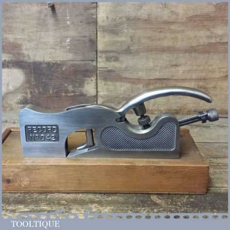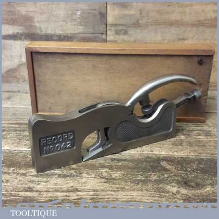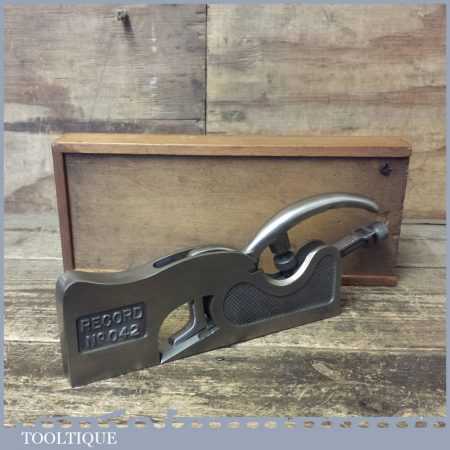Vintage Record No: 042 rabbet shoulder plane in custom made wooden box, refurbished ready for use and in good used condition.