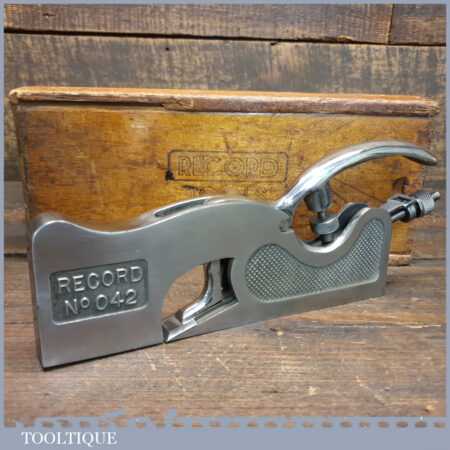 Vintage Record No: 042 rabbet shoulder plane in original wooden box, fully refurbished ready to use and in good used condition.