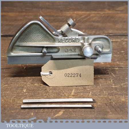 Vintage Record No: 043 plough plane complete with 3 cutters, fully refurbished and ready for use. The plane is in good condition and all components move smoothly. Note: We do not sharpen the irons