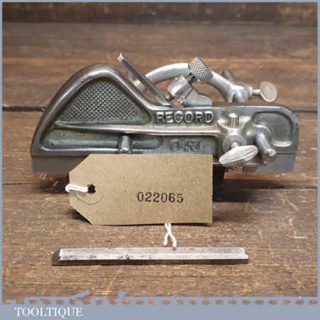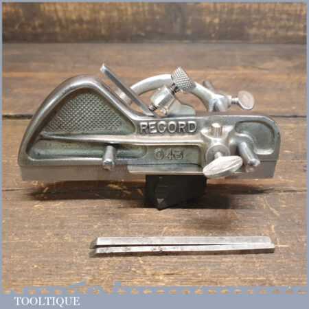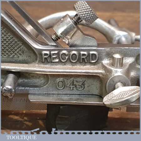Vintage Record No: 043 plough plane complete with 3 cutters, fully refurbished and ready for use. The plane is in good condition and all components move smoothly. Note: We do not sharpen the irons