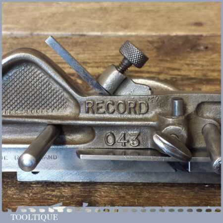 Vintage Record No: 043 plough plane complete with 3 cutters, fully refurbished and ready for use. The plane is in good condition and all components move smoothly. Note: We do not sharpen the irons.
