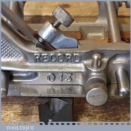 Vintage Record No: 043 plough plane complete with 3 cutters, fully refurbished and ready for use. The plane is in good condition and all components move smoothly. Note: We do not sharpen the irons.