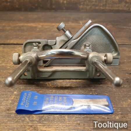 Vintage Record No: 043 plough plane complete with 3 cutters, fully refurbished and ready for use. The plane is in good condition and all components move smoothly. Note: We do not sharpen the irons