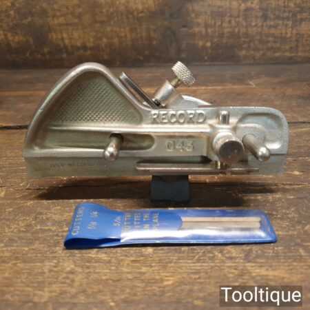Vintage Record No: 043 plough plane complete with 3 cutters, fully refurbished and ready for use. The plane is in good condition and all components move smoothly. Note: We do not sharpen the irons