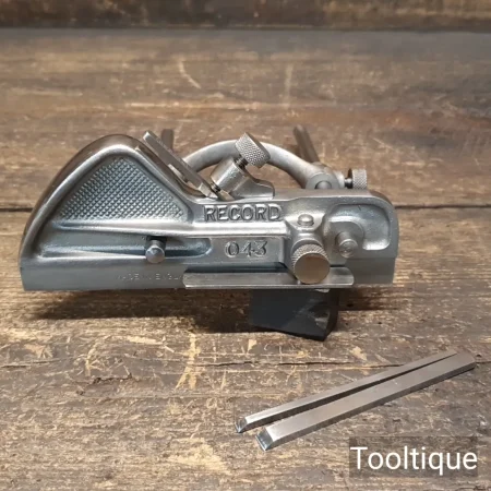 Vintage Record England No: 043 Plough Plane complete with 3 No: Cutters and all parts, refurbished ready for use and in good used condition. Note: Adjusts Freely.
