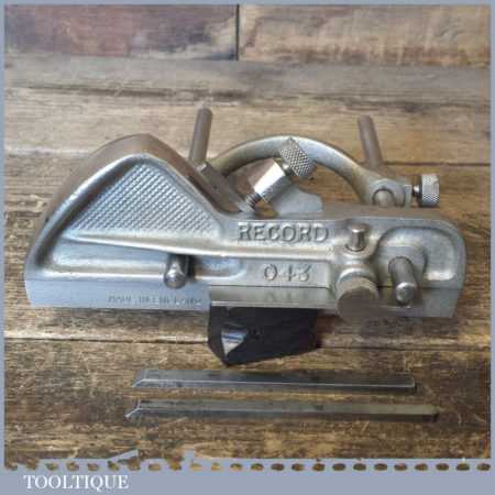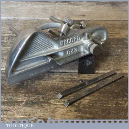 Vintage Record No: 043 plough plane complete with 3 cutters, fully refurbished and ready for use. The plane is in good condition and all components move smoothly. Note: We do not sharpen the irons.
