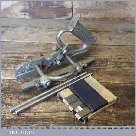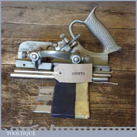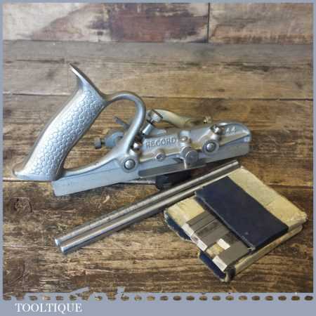 Vintage Record No: 044 Combination plough plane, complete with a part set of 7 No: cutters in good used condition.