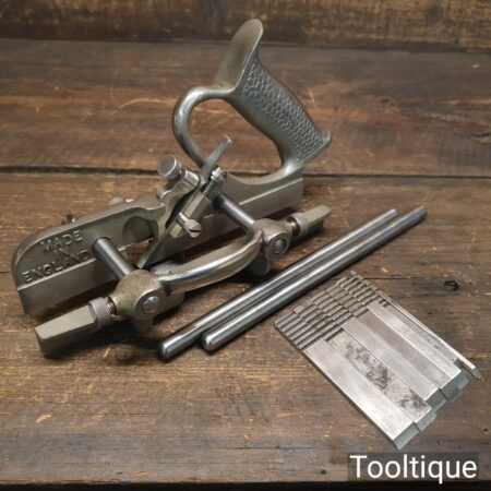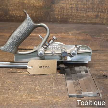 Vintage Record No: 044 plough plane complete with 8 cutters, fully refurbished and ready for use. The plane is in good condition and all components move smoothly. Note: We do not sharpen the irons.