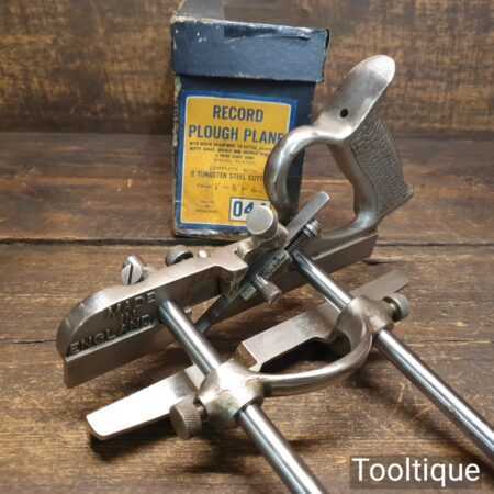 Vintage Record No: 044 plough plane complete with 8 cutters, fully refurbished and ready for use. The plane is in good condition and all components move smoothly. Note: We do not sharpen the irons