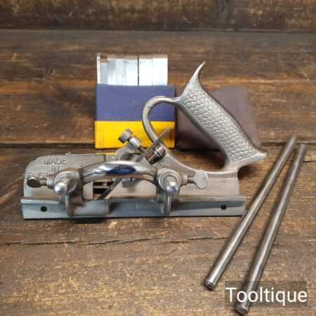 Vintage Record No: 044 plough plane complete with 8 cutters, fully refurbished and ready for use. The plane is in good condition and all components move smoothly. Note: We do not sharpen the irons.