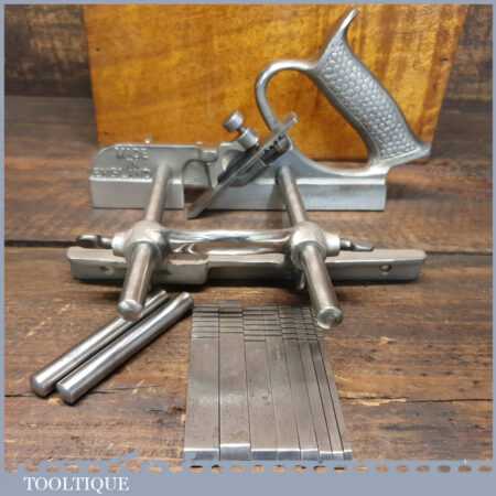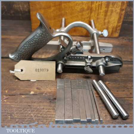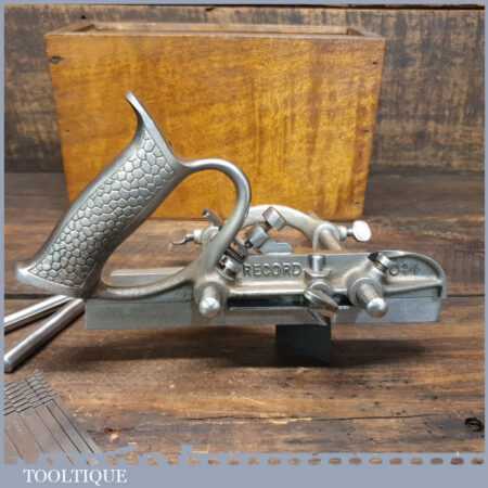 Vintage Record No: 044 plough plane complete with 8 cutters, fully refurbished and ready for use. The plane is in good condition and all components move smoothly. Note: We do not sharpen the irons.