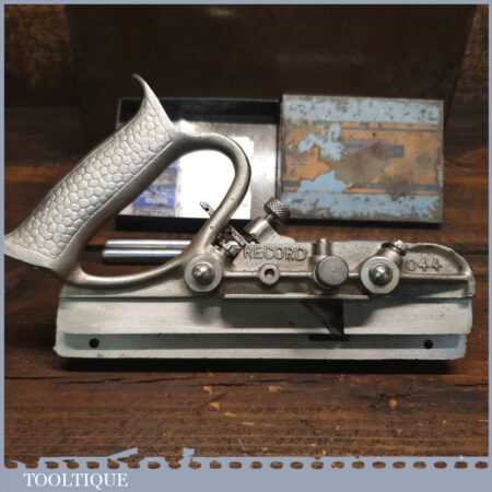 Vintage Record No: 044 plough plane complete with 8 cutters, fully refurbished and ready for use. The plane is in good condition and all components move smoothly. Note: We do not sharpen the irons
