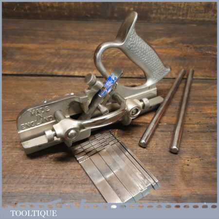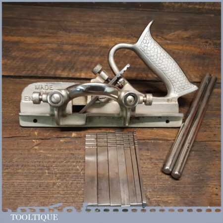 Vintage Record No: 044 plough plane complete with 8 cutters, fully refurbished and ready for use. The plane is in good condition and all components move smoothly. Note: We do not sharpen the irons.
