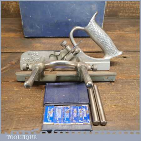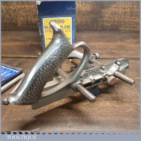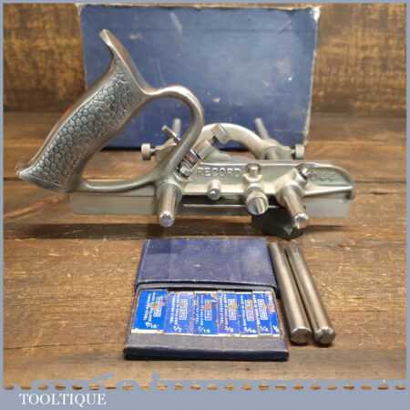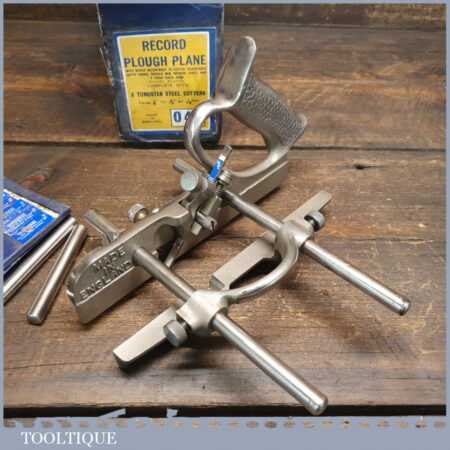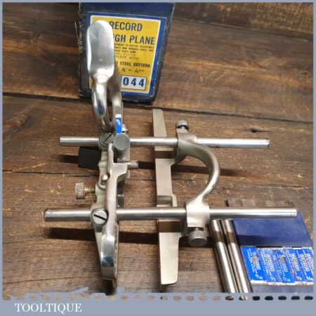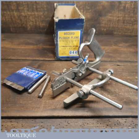 Vintage Record No: 044 plough plane complete with 8 cutters, fully refurbished and ready for use. The plane is in good condition and all components move smoothly. Note: We do not sharpen the irons.
