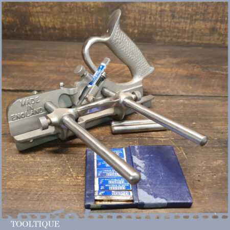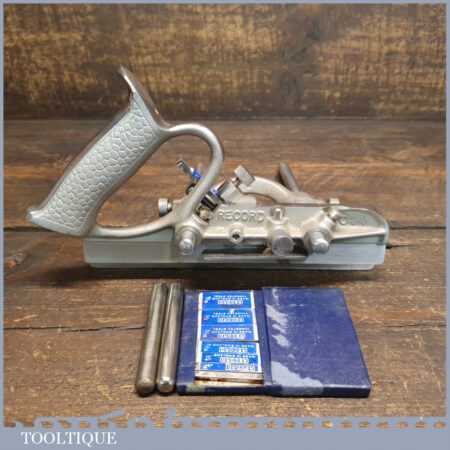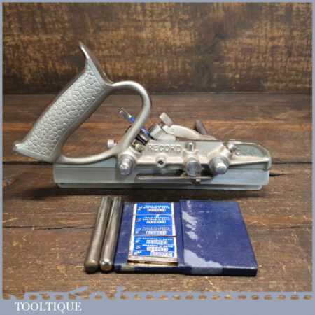 Vintage Record No: 044 plough plane complete with 8 cutters, fully refurbished and ready for use. The plane is in good condition and all components move smoothly. Note: We do not sharpen the irons.