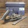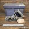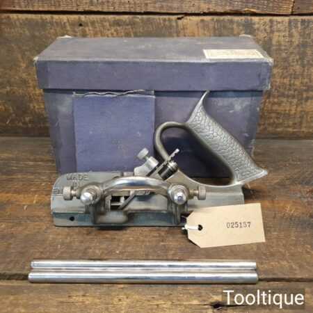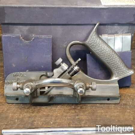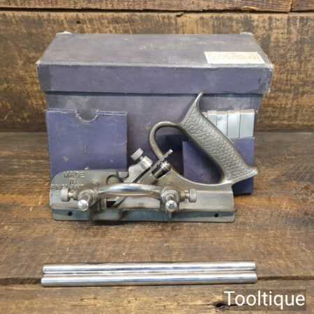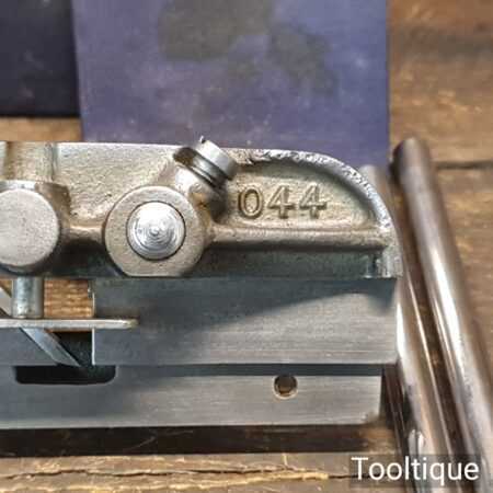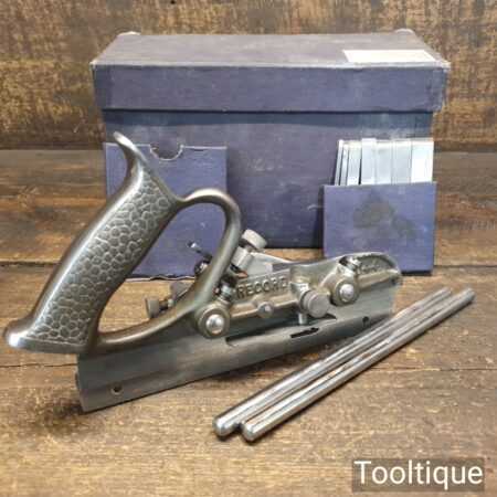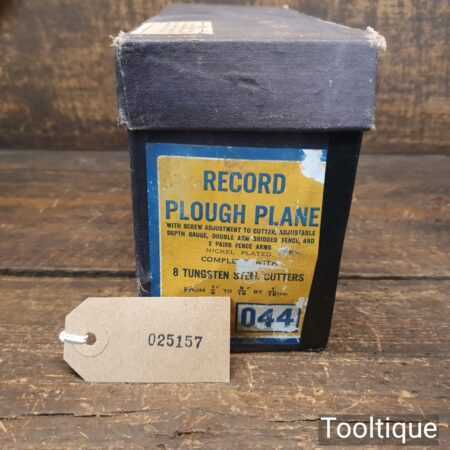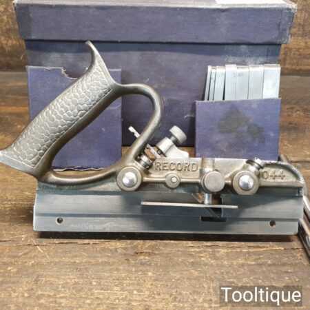 Vintage boxed Record No: 044 plough plane complete with 8 cutters, fully refurbished and ready for use. The plane is in good condition and all components move smoothly. Note: We do not sharpen the irons. Note: The box is a bit tatty.