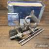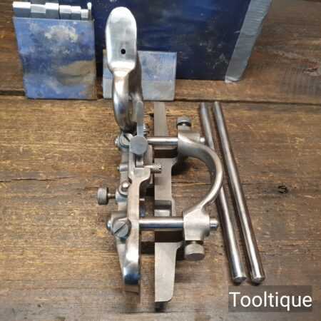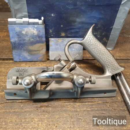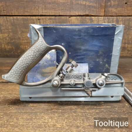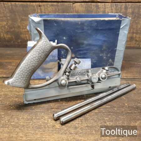 Vintage Record No: 044 plough plane complete with 8 cutters, fully refurbished and ready for use. The plane is in good condition and all components move smoothly. We do not sharpen the irons. Note: The Box has no lid.