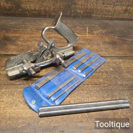 Vintage Record No: 044 plough plane complete with 8 cutters, fully refurbished and ready for use. The plane is in good condition and all components move smoothly. Note: We do not sharpen the irons.