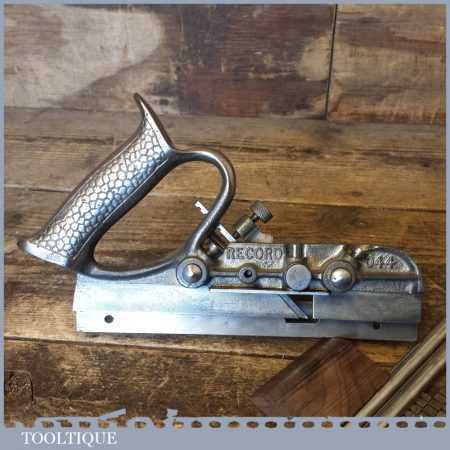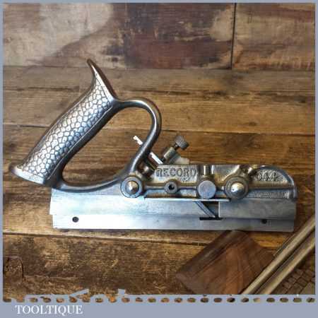 Vintage Record No: 044 plough plane complete with 6 cutters, fully refurbished and ready for use. The plane is in good condition and all components move smoothly. Note: We do not sharpen the irons.