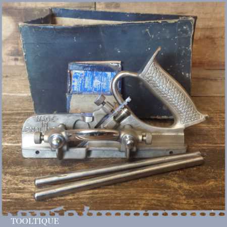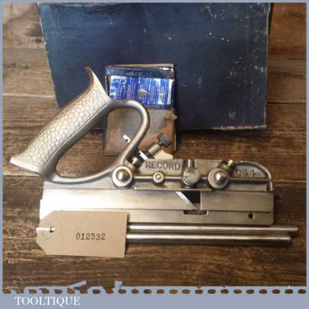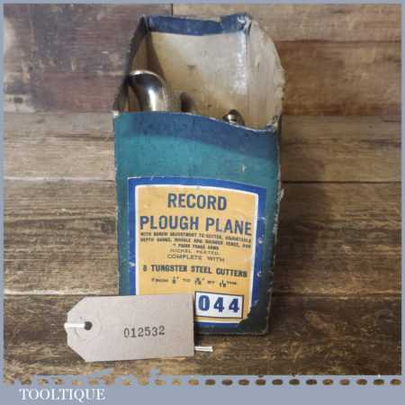 Vintage Record No: 044 plough plane complete with 8 cutters, fully refurbished and ready for use. The plane is in good condition and all components move smoothly. Note: We do not sharpen the irons.