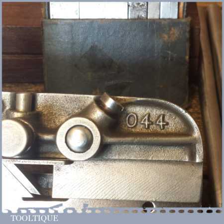 Vintage Record No: 044 plough plane complete with 8 cutters, fully refurbished and ready for use. The plane is in good condition and all components move smoothly. Note: We do not sharpen the irons, which also vary in length.