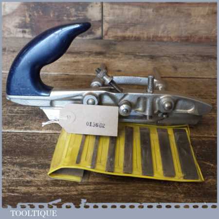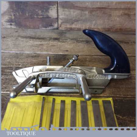 Vintage Record No: 044C plough plane with 8 cutters, fully refurbished and ready for use. The plane is in good condition and all components move smoothly. Note: We do not sharpen the irons which are compatible marked Stanley.