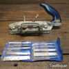 Vintage Record No: 044C plough plane complete with 10 cutters, fully refurbished and ready for use. The plane is in good condition and all components move smoothly. Note: We do not sharpen the irons, for those not familiar with these the depth adjustment secures it position with an internal nylon washer. Simply undo, adjust and tighten again