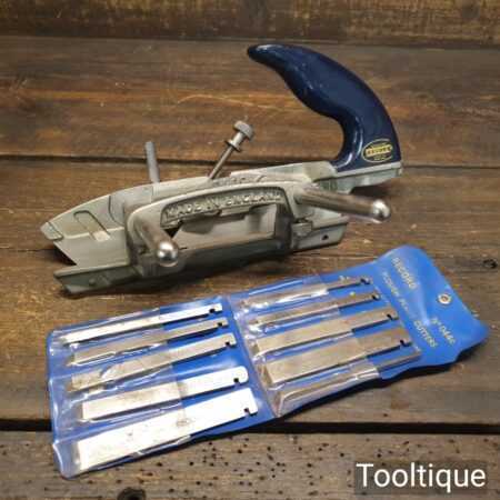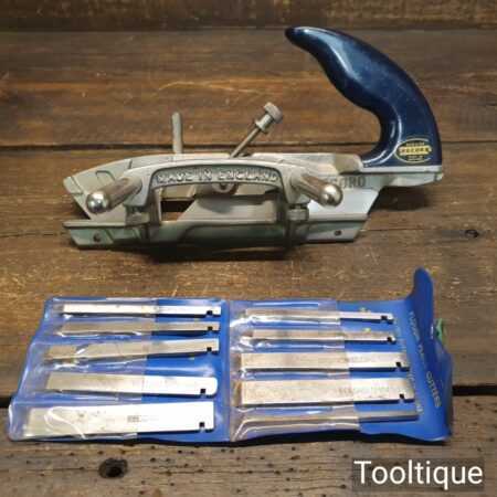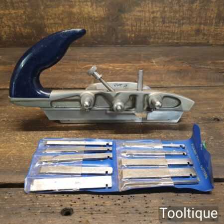 Vintage Record No: 044C plough plane complete with 10 cutters, fully refurbished and ready for use. The plane is in good condition and all components move smoothly. Note: We do not sharpen the irons, for those not familiar with these the depth adjustment secures it position with an internal nylon washer. Simply undo, adjust and tighten again