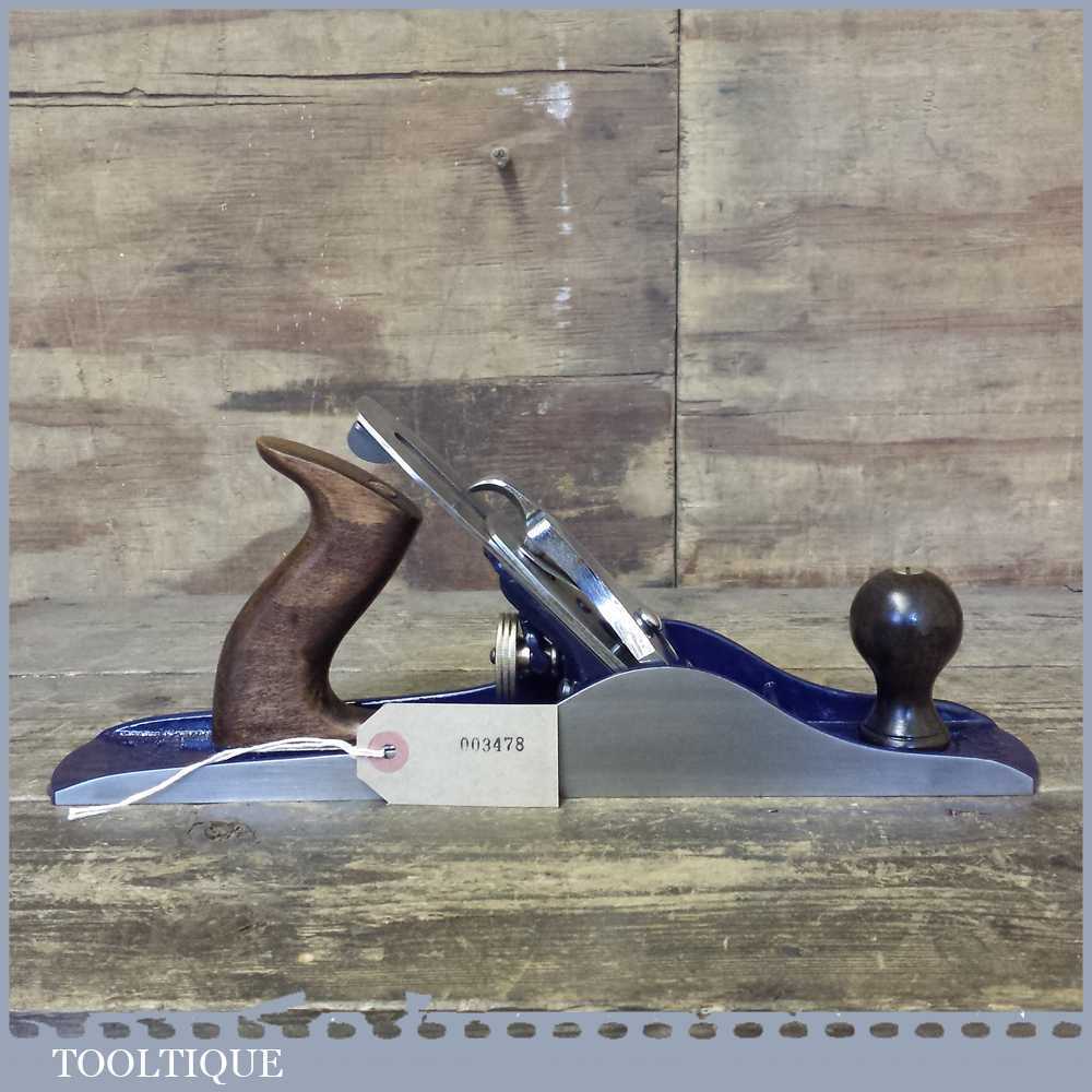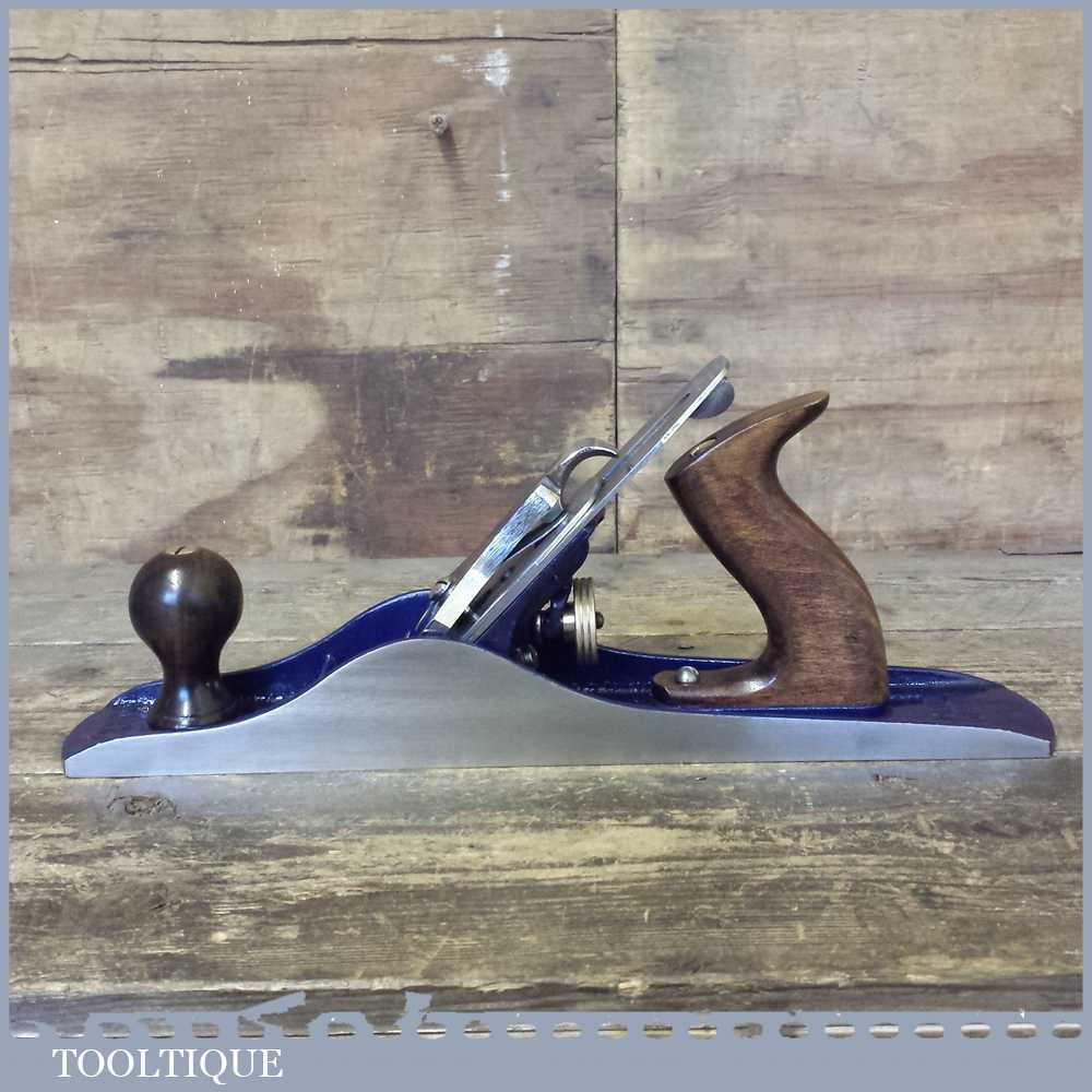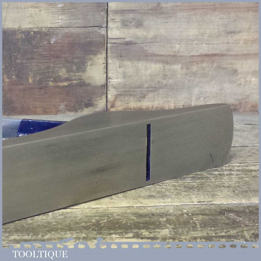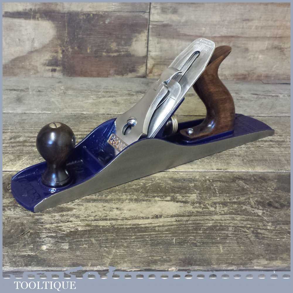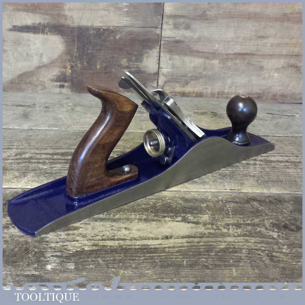 When refurbishing planes we do not merely clean them to make them look good, they are restored to a level that ensures they are actually ‘in plane’ sharpened, honed and all the components are thoroughly cleaned so that they move freely. Our planes are specifically reconditioned to satisfy professional tradesmen who will instantly know the difference between buying one of our planes over general other used ones. Our aim with reconditioning these planes as we do is to reduce tear out by refining the plane so it can be set up to take a very fine shaving. For new woodworkers: Note that we also refine the set up of the chipbreaker which is often neglected in other planes giving you the best possible start.