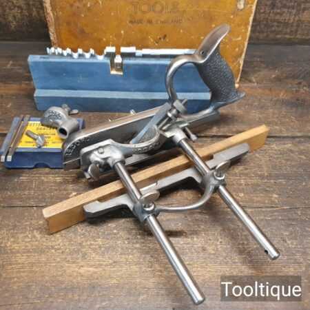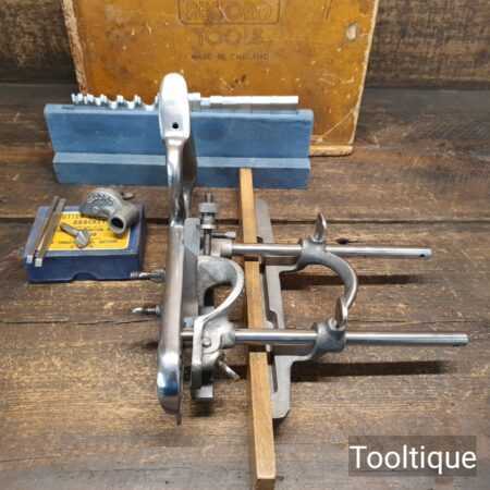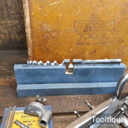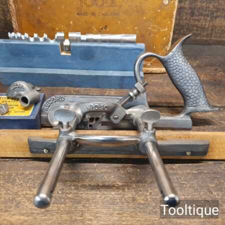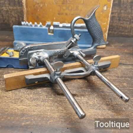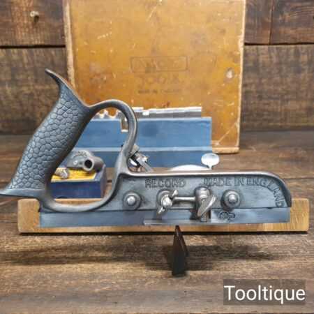 Vintage Record No: 050A combination plough plane complete with 18 cutters and original box, fully refurbished and ready for use. The plane is in good condition and all components move smoothly. Note: We do not sharpen the irons.