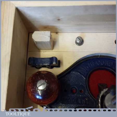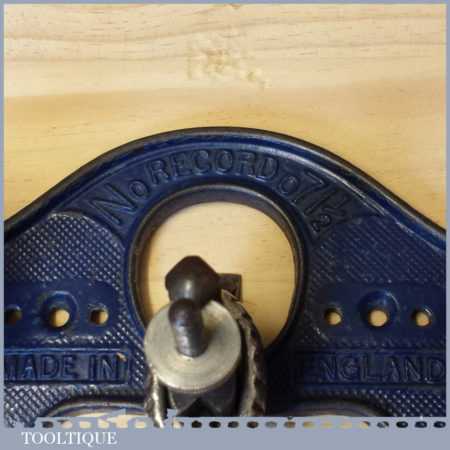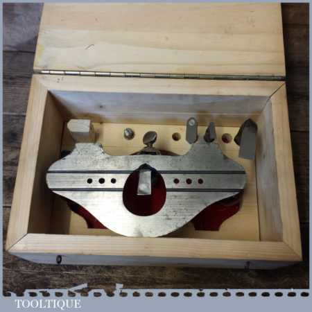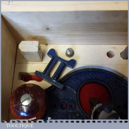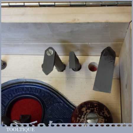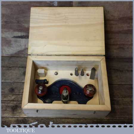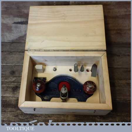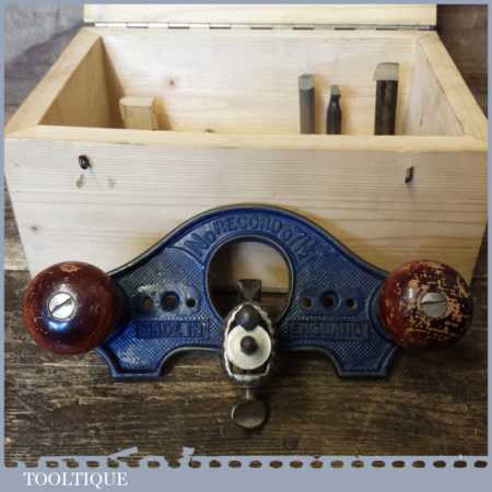 Vintage Record No: 071 ½” hand router plane complete with fence, depth stop and 4 irons in custom made box, and in good used condition.