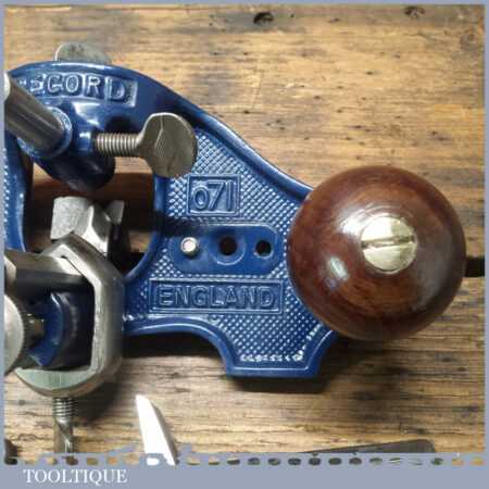 Vintage Record No: 071 hand router plane complete with fence, depth stop and 3 irons and in good used condition.