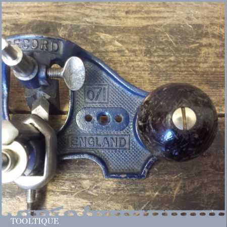 Vintage Record No: 071 hand router plane, with one cutter fully refurbished and in good used condition ready to use. Note: missing the shoe and guide plus a couple of cutters.