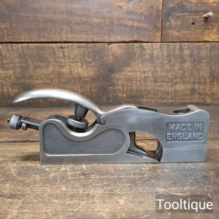 When refurbishing planes, we do not merely clean them to make them look good, they are restored to a level that ensures this plane is actually ‘in plane to within 0.01mm’ sharpened, honed and all the components are thoroughly cleaned so that they move freely. Our planes are specifically reconditioned to satisfy professional tradesmen who will instantly know the difference between buying one of our planes over general other used ones.